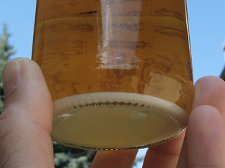 (já nechávám 2-3dny). Pak slejeme do druhé (polévací) lahvičky tak, aby sediment na dně