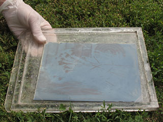příliš suché kolódium již nelze zcitlivit a projeví se černými okraji snímky.